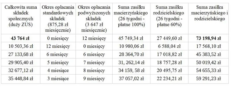 Poniżej przedstawione są kluczowe informacje dotyczące wymiaru zasiłku macierzyńskiego: